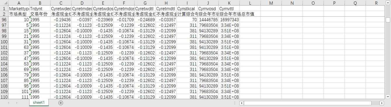 Cyretwdos [考虑现金红利再投资的综合年市场回报率(流通市值加权平均法)] 。