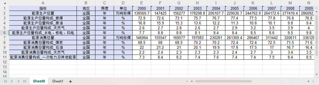 中国全国能生产消费总量原煤原油天然气水电核电构成2000-2022