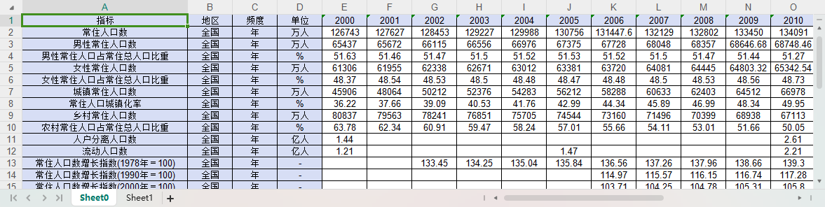 数据范围:中国全国级别的数据(没有分省)