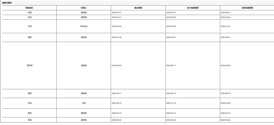 1. **初审阶段**:从投稿到通过初审大约需要一周左右的时间。这一阶段主要是对论文的基本要素进行检查,包括格式、主题是否符合期刊要求等。