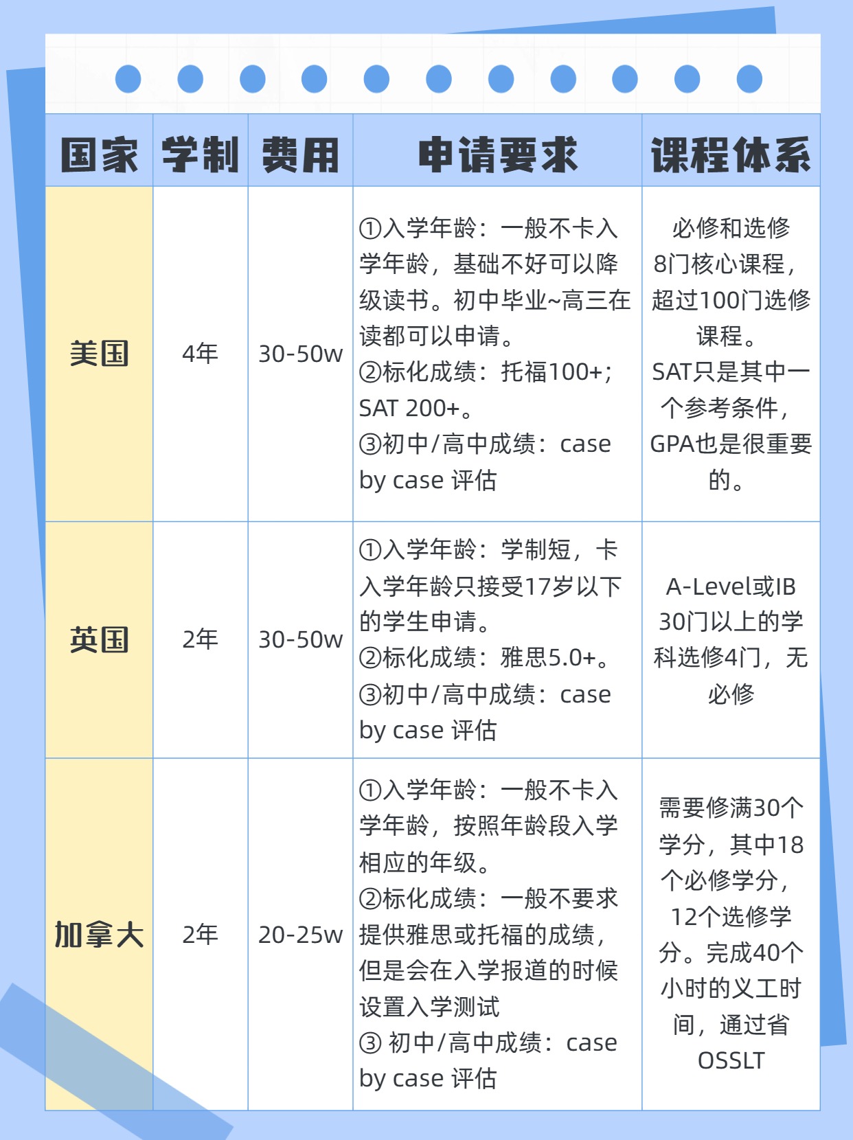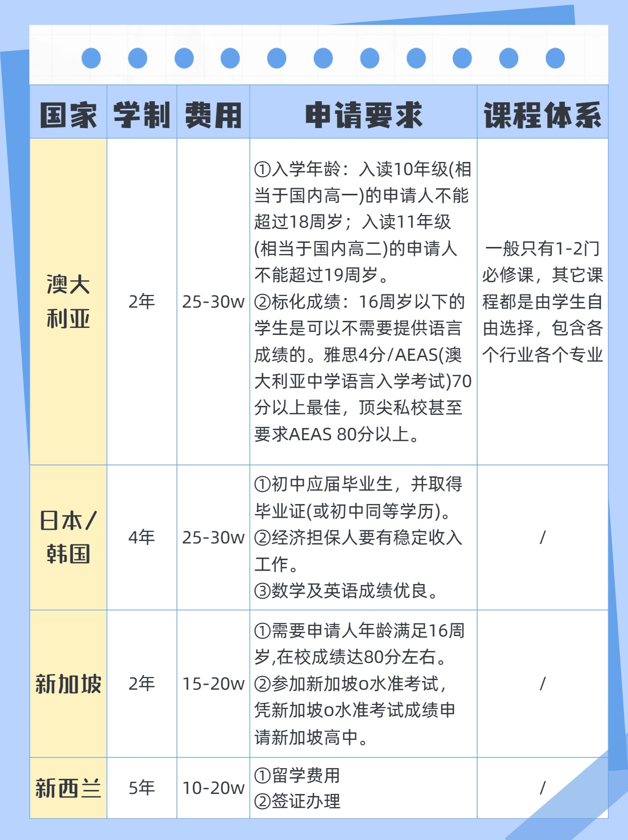 谁说只有高考压力大,中考的压力也不小!近些年,为孩子考虑出国的家长可不少,首先考虑的是学习、发展的问题,其次是学费 、学制等等。今天就整理了各国高中留学的申请要求和体系供大家参考噢~