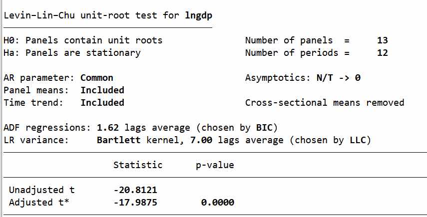 在LLC检验中,只有两个变量,P值0.9,但是在...