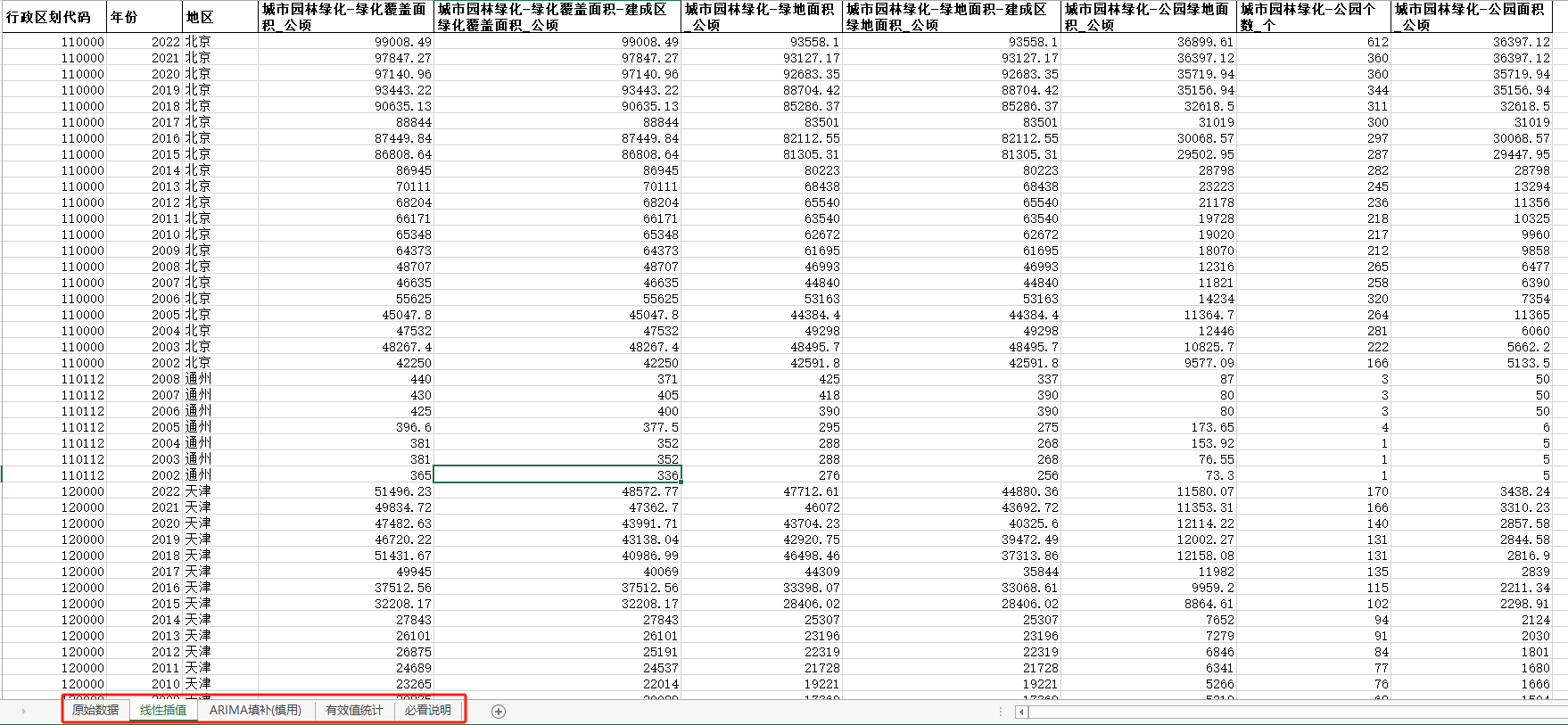 中国城市建设数据库(包含四个页签:原始数据、线性插值、ARIMA填补、有效值统计四个页签)本数据搜集整理了《中国城市统计年鉴》公布的历年数据,数据年度为2002-2022年。