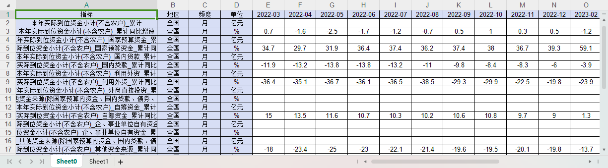 中国全国月度数据202203-202312固定资产投资资金来源投资项目情况