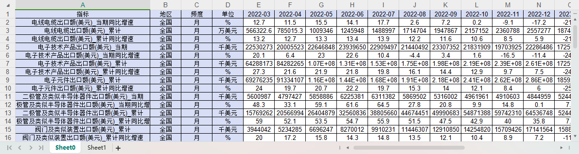 电子技术产品出口额(美元)_当期