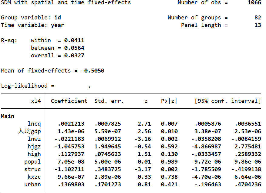 空间计量xsmle命令得到的结果 Log-likelihood的值为什么是空的