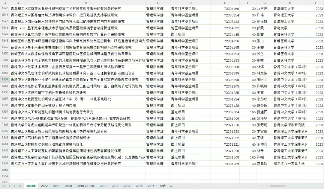 2005-2021年国自然管理学部标书80+份及历年立项清单