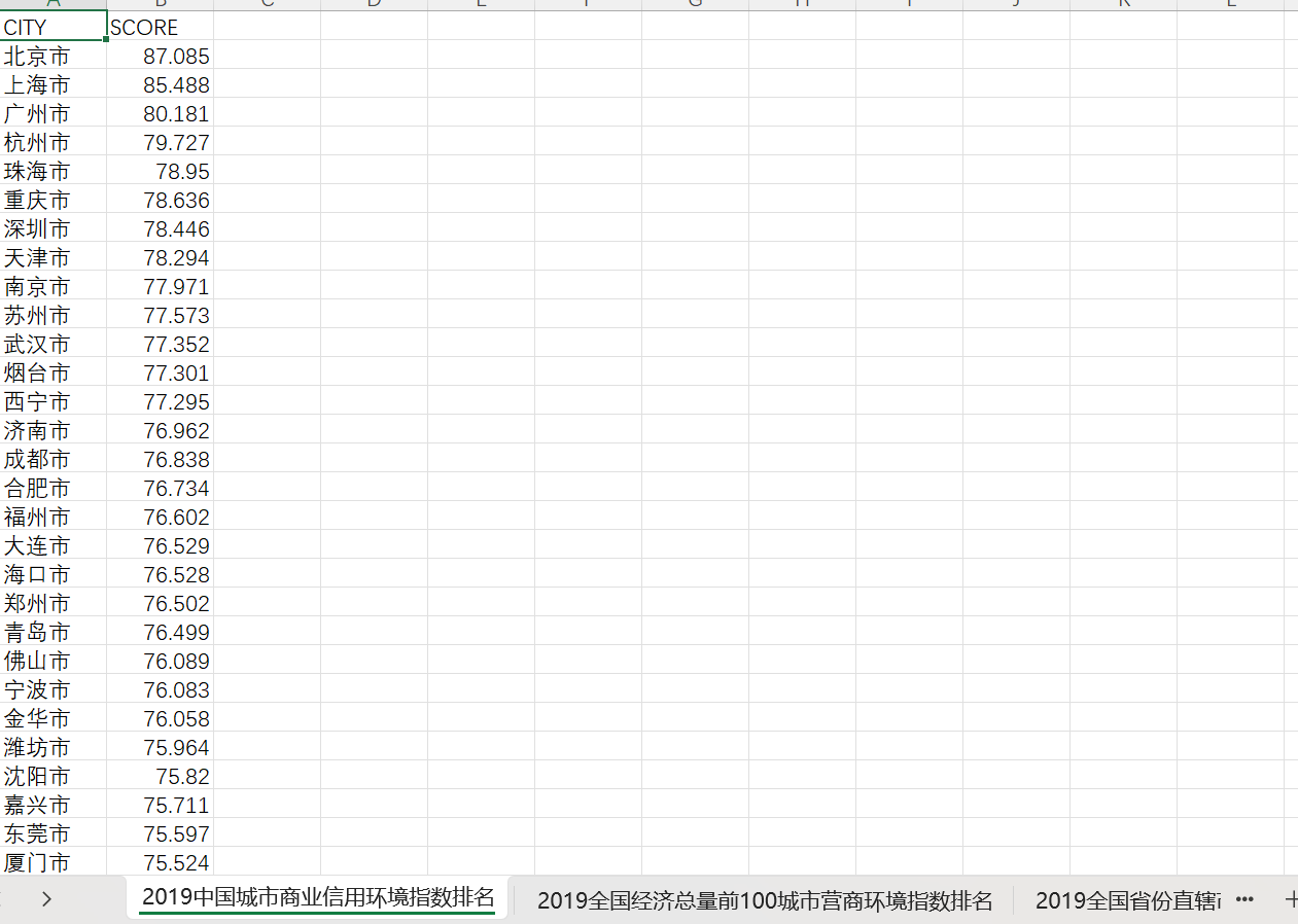 1. 2019中国城市商业信用环境指数排名