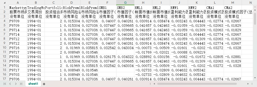 CMA1 [投资模式因子(流通市值加权)] - 低投资比例股票组合和高投资比例股票组合的周收益率之差。组合投资周收益率的计算采用流通市值加权。