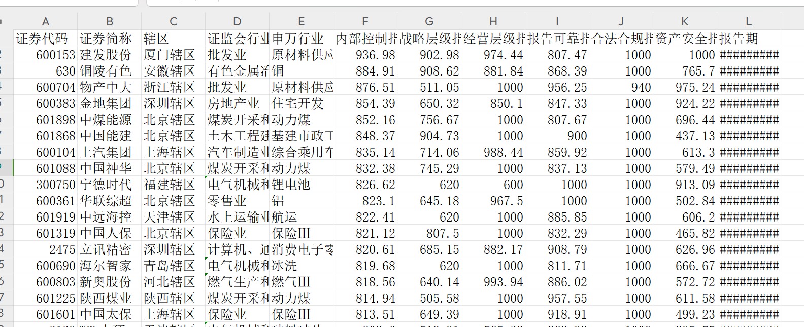 二、指标说明主要包括:股票代码、股票简称、报告期、所属行业、内部控制指数评分、内部控制指数评级、内部控制指数、战略层级指数、经营层级指数、报告可靠指数、合法合规指数、资产安全指数、财报内控重大缺陷相关指标、内部环境、风险评估、控制活动、信息与沟通、内部监督、内部控制信息披露指数等