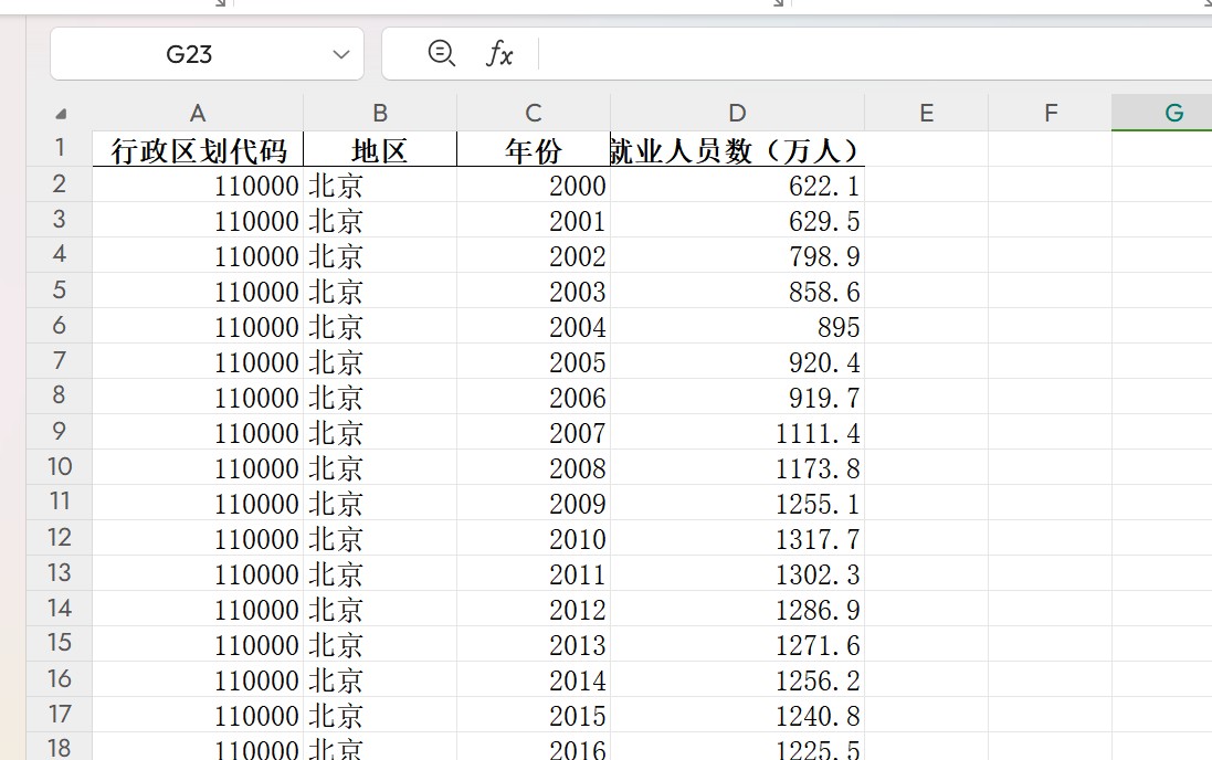 03-20年285个地级以上城市劳动力(从业人员)总量