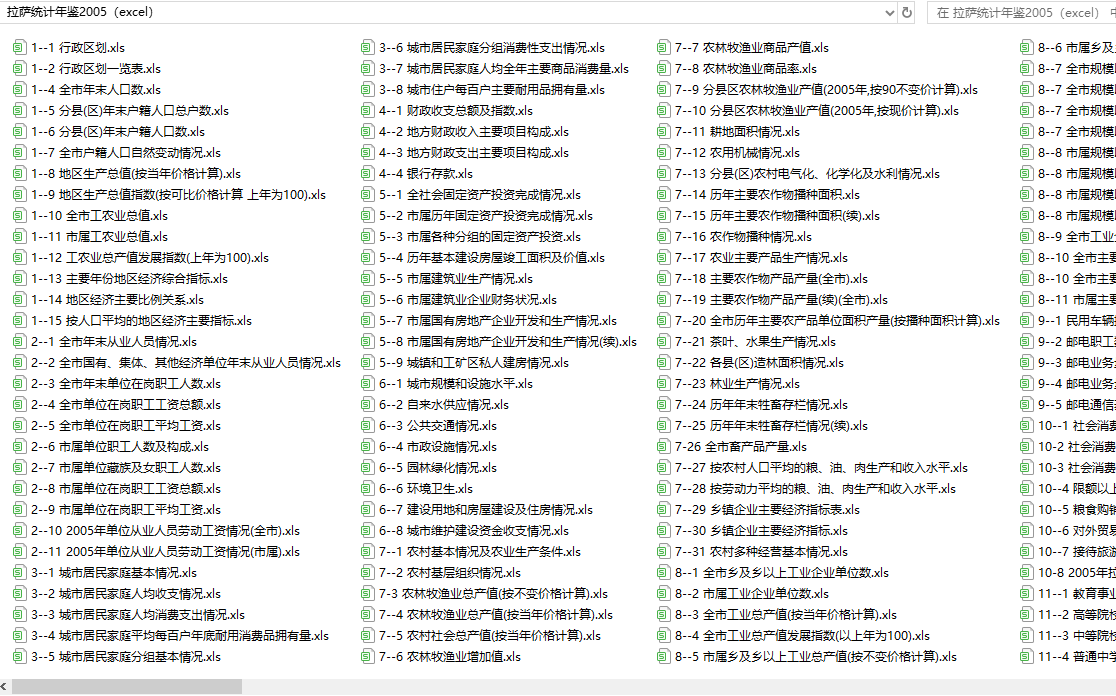 拉萨市统计年鉴2005(excel格式) 里面是2005年的数据