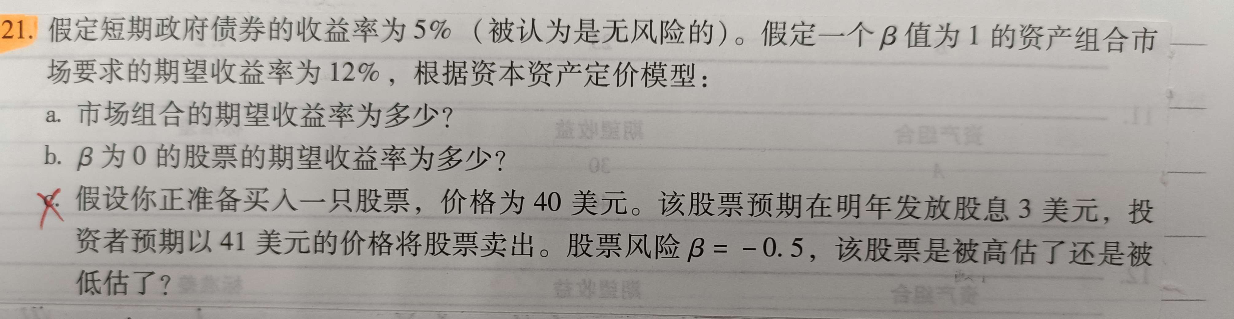 按照CAPM模型求出来的收益率为1.5%,按题目操作得出的收益率为10%,这不是明显股价被高估了吗?<br>