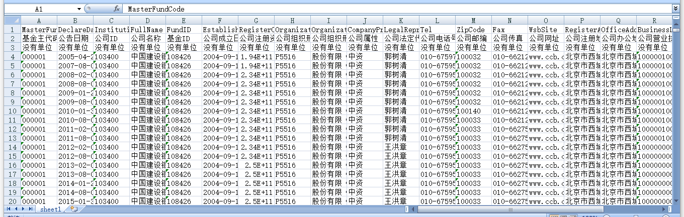 基金主代码 公告日期 公司ID 公司名称 基金ID 公司成立日期 公司注册资本 公司组织形式编码 公司组织形式 公司属性 公司法定代表人 公司电话号码 公司邮编 公司传真 公司网址 公司注册地址 公司办公地址 公司营业执照注册号 公司联系人 公司电子邮箱 基金托管业务批准文号 托管负责人