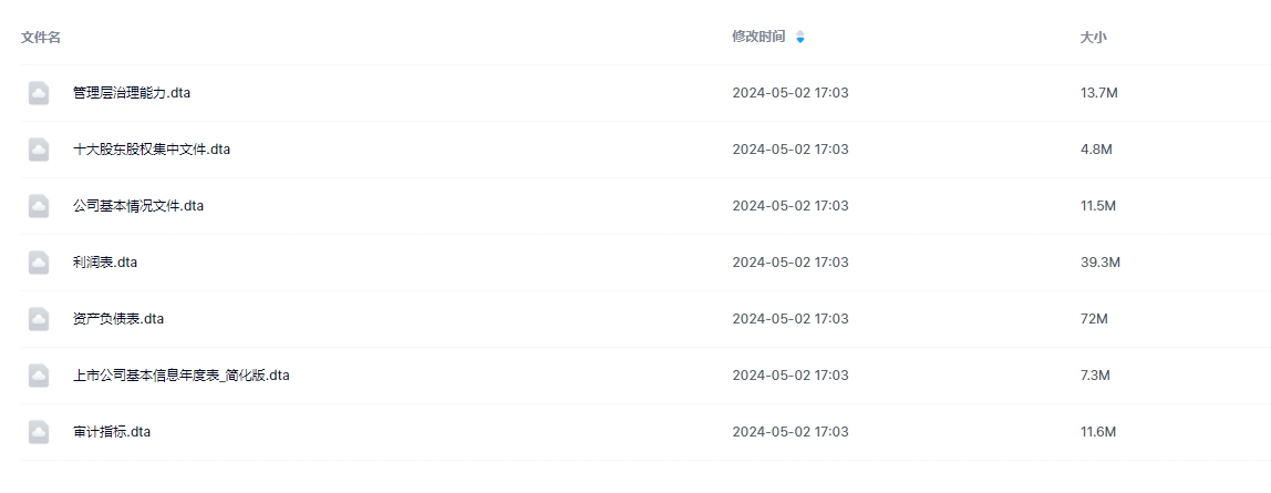 证券代码、年份、证券代码、证券简称、行业代码、制造业取两位代码,其他行业用大类、行业名称、超额管理费用、资产总计、负债合计、董事会规模、员工人数、营业收入、营业成本、管理费用、公司经由四大(普华永道、德勤、毕马威、安永)审计为1,否则为0。 公司前5位大股东持股比例的平方和、股票代码、沪深A股为1,否则为0、北京A股为1,否则为0、Listedyear、Mgtexp、lnsale、Lev、Growth、Board、Staff、Age、Magin、行业代码等等