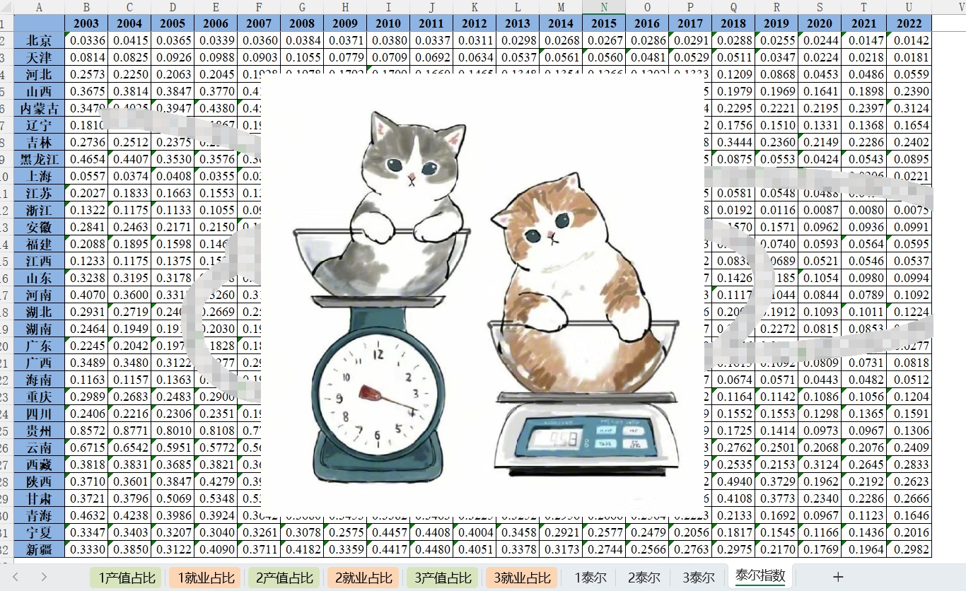 31省区市产业结构合理化—泰尔指数2003-2022.xlsx
