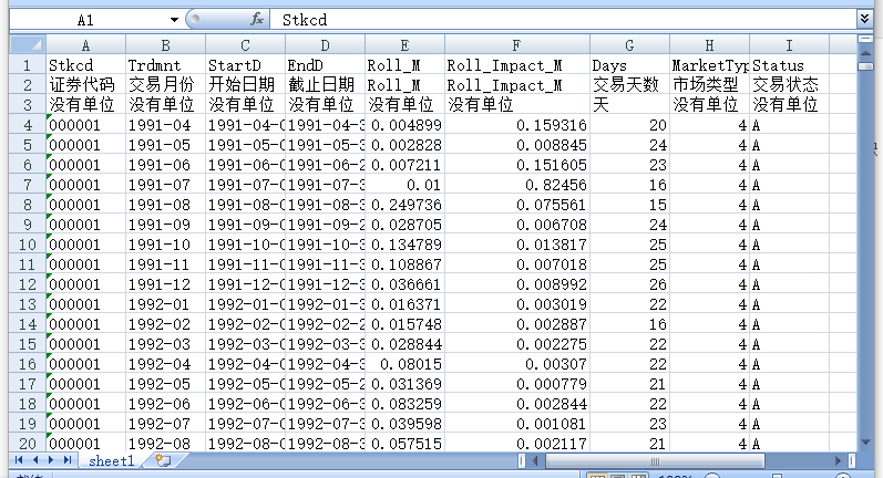 上市公司个股Roll指标表(月度)1990-202403代码开始截止日期Roll_MRoll_Impact_M天数类型状态