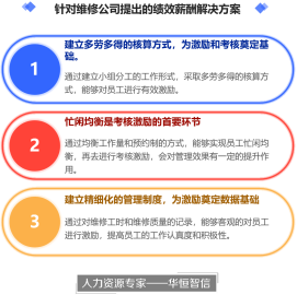 近几年,随着疫情的影响,给旅游行业的业务带来了较大打击,该维修公司的维修检测业务量也随之下降,薪酬总额随之减少,过去员工吃“大锅饭”,对该公司影响不大,现在因为收入减少,再继续维持“大锅饭”的现状,不仅对主动积极工作的员工不公平,维修效率无法提高,也不利于该维修公司的长远发展。公司领导希望通过绩效薪酬改革对员工进行激励,提高员工积极性和主动性,提高维修效率,但具体如何实施没有落地的想法和规划,因此,该公司领导选择了与专业的人力资源咨询公司——华恒智信,就如何对公司现有的薪酬绩效进行改革,达成本次项目合作。