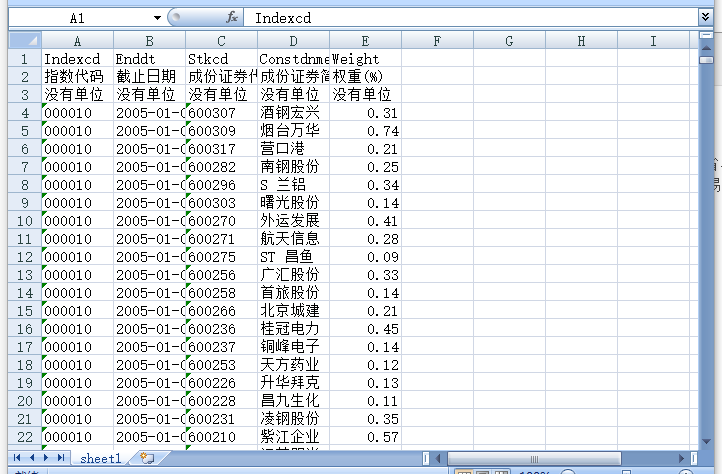上证综合指数深圳成分股创业板科创板等指数成分股权重文件2005-20240423指数代码截止日期成份证券代码成份证券简称权重(%)