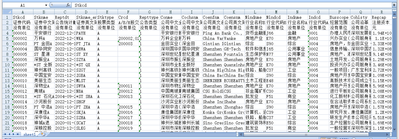 证券代码 证券中文简称 公告统计截止日期 证券英文简称 股票类型 A/B/H股交叉码 公告类型 公司中文全称 公司中文简称 公司英文名称 公司英文简称 行业名称B 行业代码B 行业名称A 行业代码A 经营范围 公司沿革 注册资本