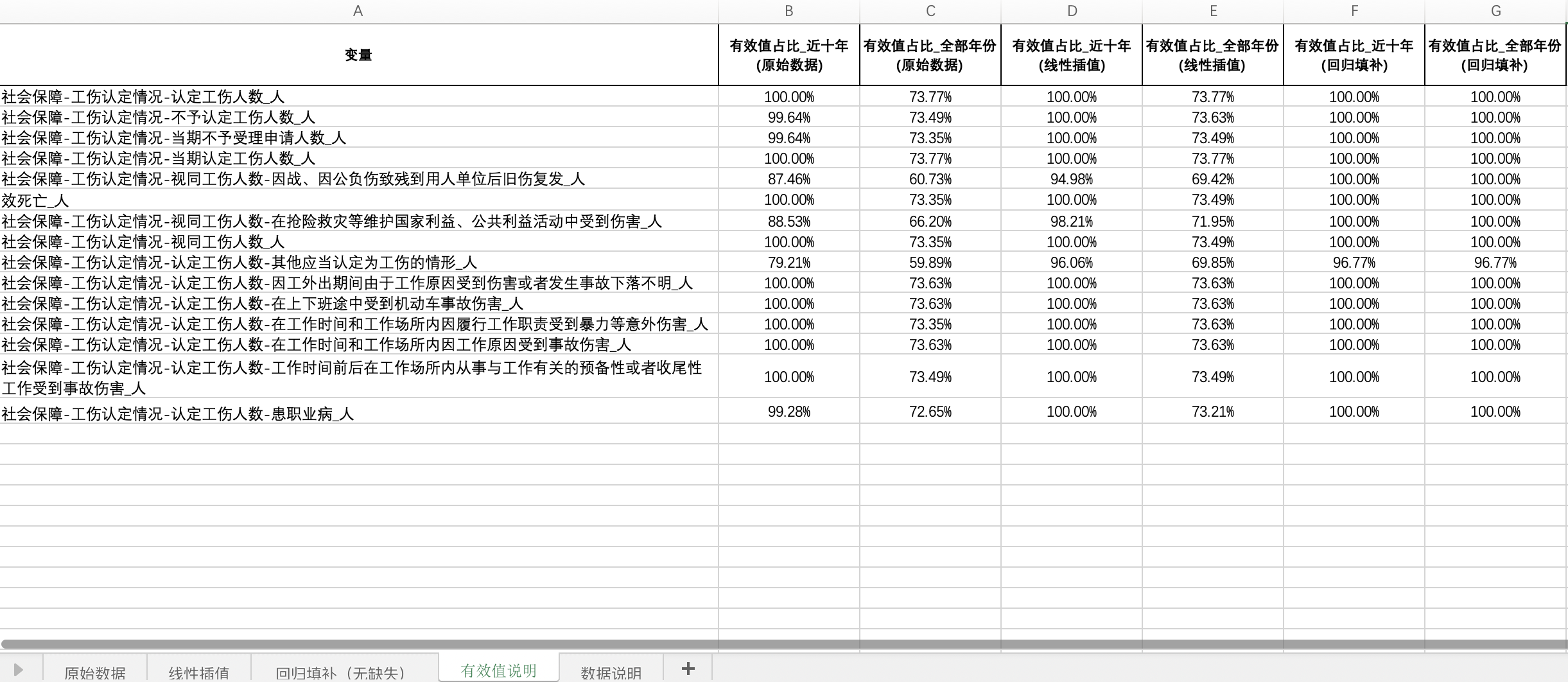 数据名称:全国31省份各省工伤认定情况认定工伤人数工伤申请人数职业病各类原因认定人数(插值填补无缺失版)