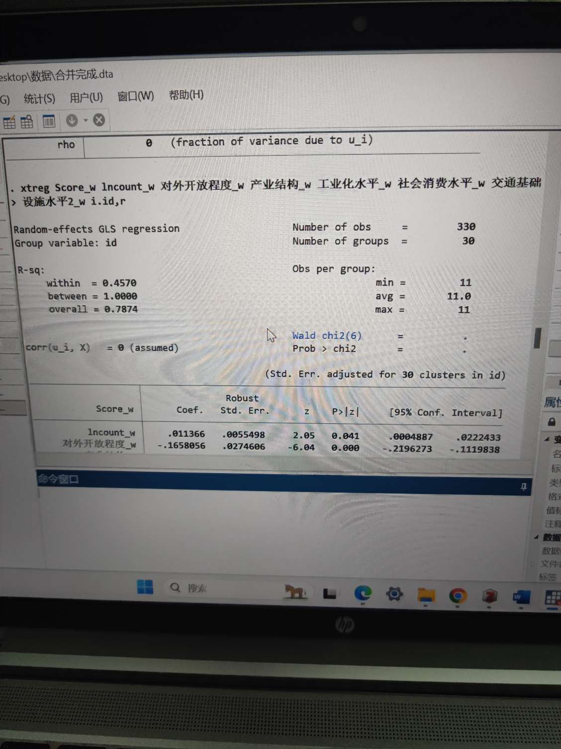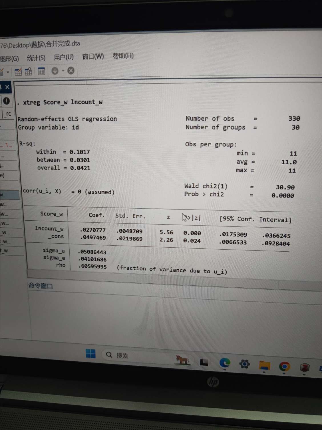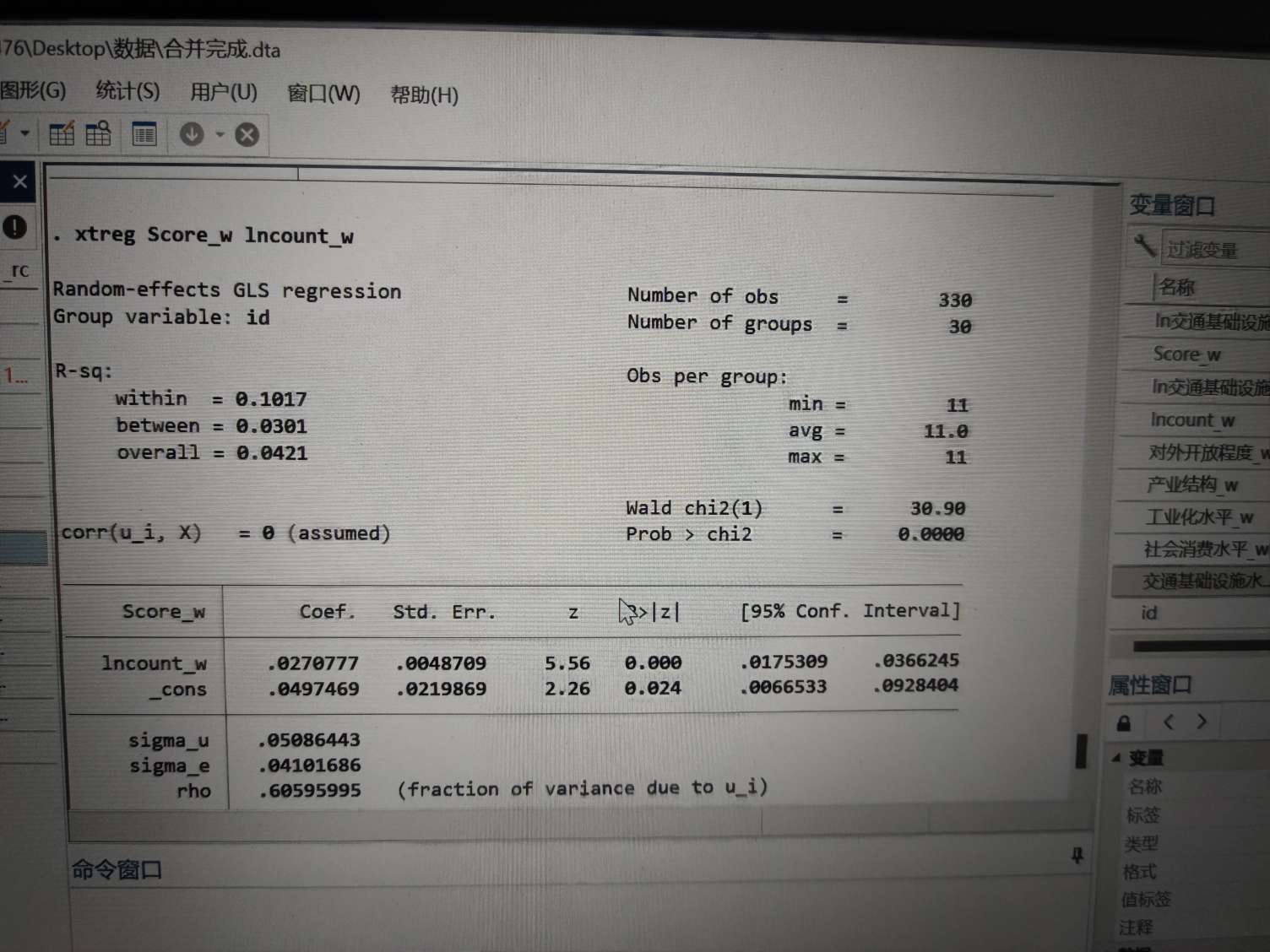 你的命令都写错了,你这个命令是随机效应,不是固定效应。。