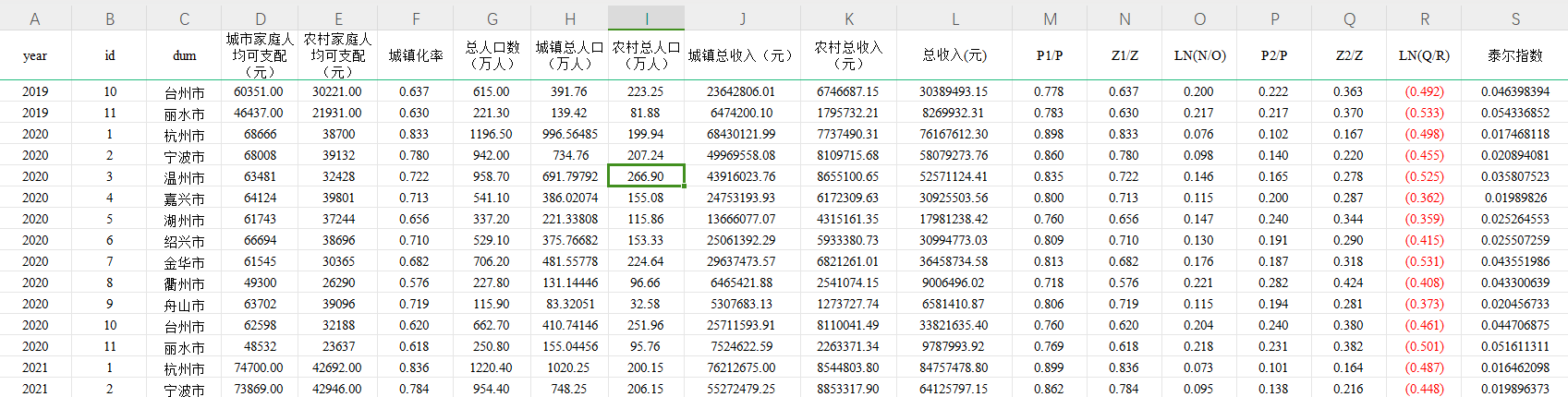 【数据更新啦】浙江省11个地级市泰尔指数2007-2022
