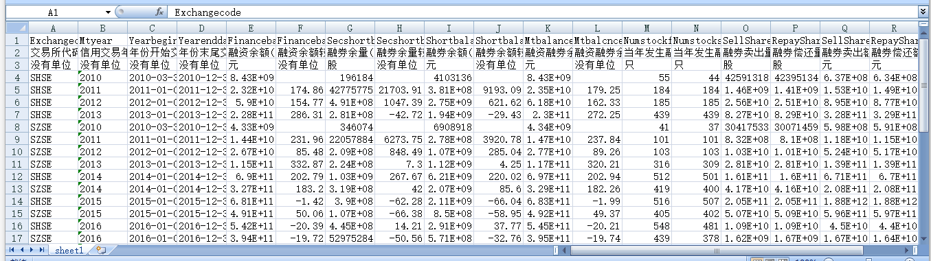 交易所代码 信用交易日期 融资买入额(元) 融资偿还额(元) 融资余额(元) 融券卖出量(股) 融券偿还量(股) 融券余量(股) 融券余额(元) 融资融券余额(元) 当日发生融资的股票数量(只) 当日发生融券的股票数量(只) 融券卖出额 融券偿还额