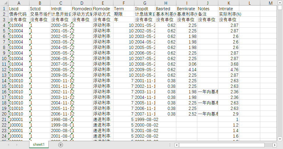 企业债公司债浮动利率浮动情况表1998-20290417