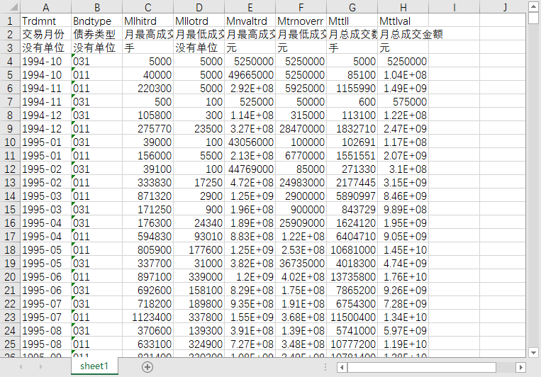 国债现货国债回购可转债企业债公司债债券市场月交易数据表1994-202404