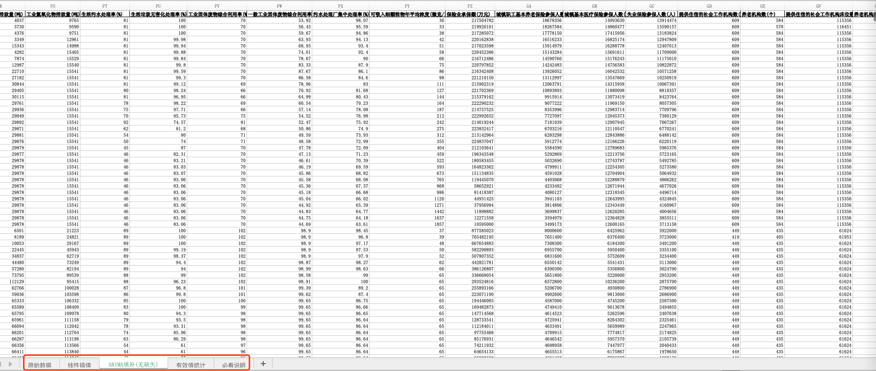 第九,ARIMA填补。利用时间趋势,对剩余缺失进行预测,得到ARIMA填补版