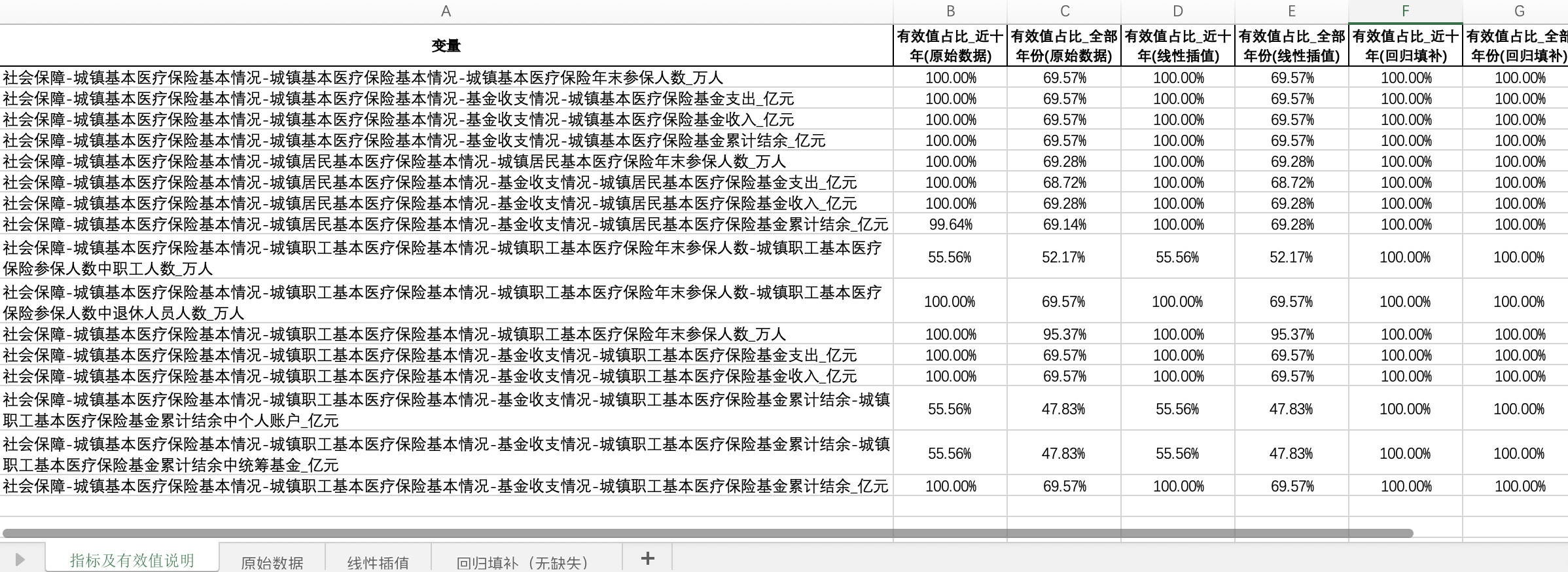 数据格式:Excel面板数据含原始数据(由于多年度指标不同存在缺失值)、线性插值、回归填补(无缺失)三个版本,提供您参考使用。其中,回归填补无缺失值。