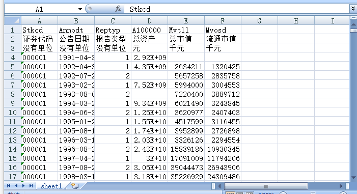 Stkcd [证券代码] - 上海A股以上交所公布的证券代码为准,深圳A股以深交所公布的证券代码前加上00