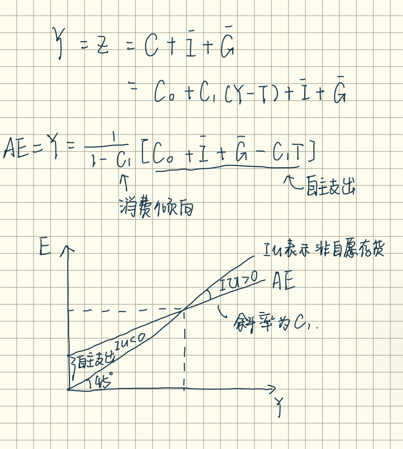 dengyfman 发表于 2024-5-16 08:10 你现在展示的是国民收入模型,投资是外生变量,是引起总需求变化的原因之一,不会受总需求的影响而成为结果 ...