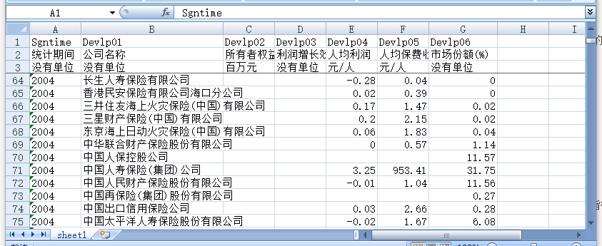 统计期间 公司名称 所有者权益增长额 利润增长效率 人均利润 人均保费收入 市场份额(%)