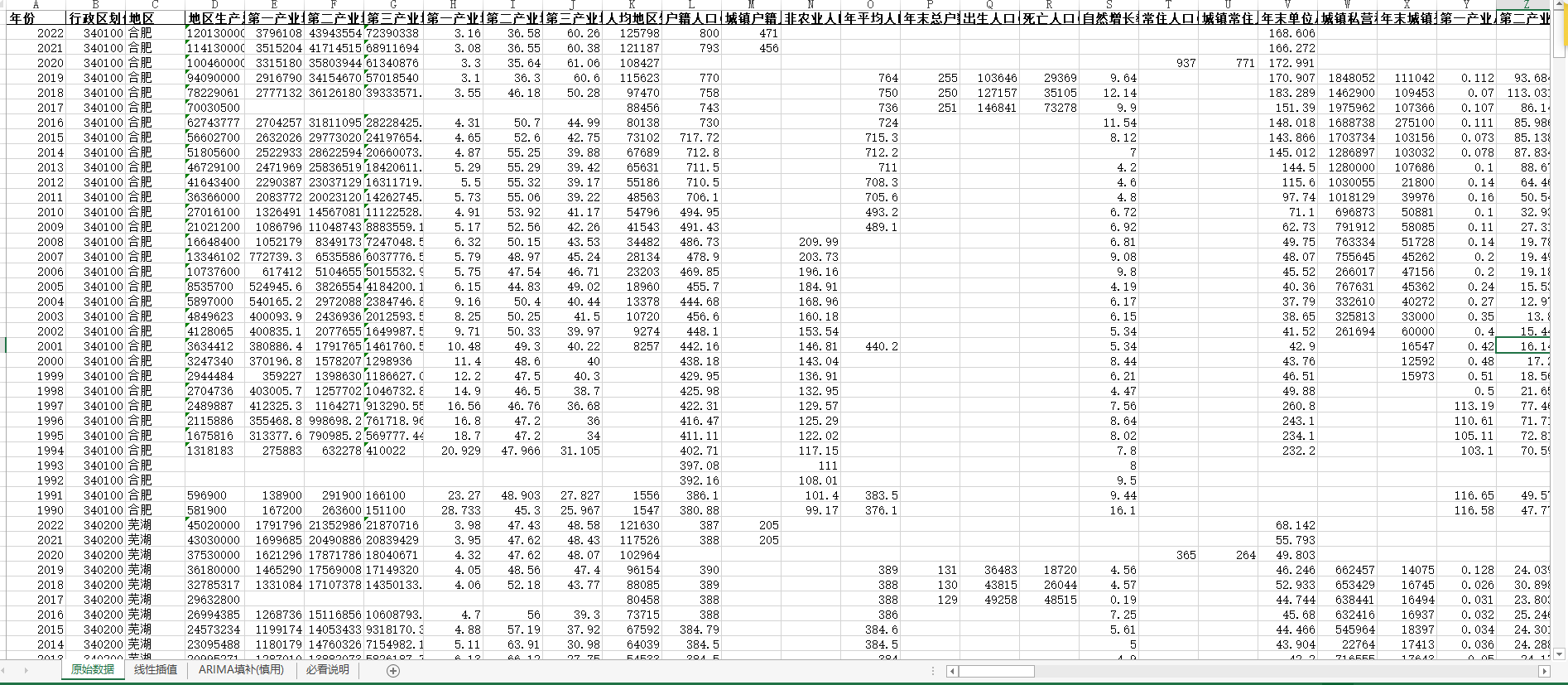 中国地级市面板统计数据库(包含四个页签:原始数据、线性插值、ARIMA填补三个页签)