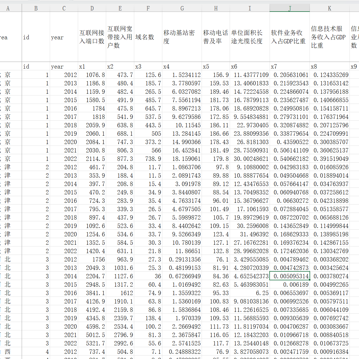 各省数字经济指标体系 仅为指标 2012-2022