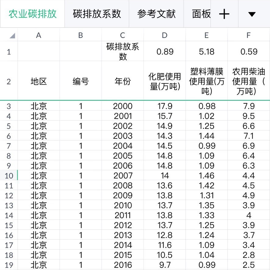 农业碳排放量含原始数据