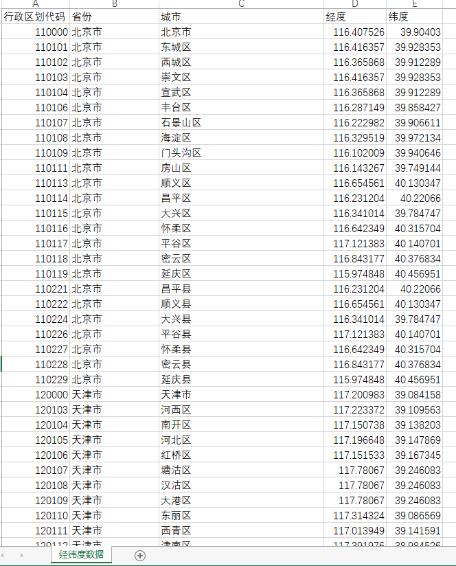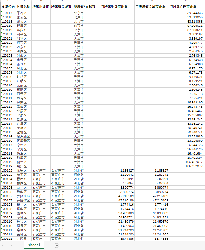 全国各省市县经纬度及全国各区县与所属地级市所属省会城市所属直辖市距离