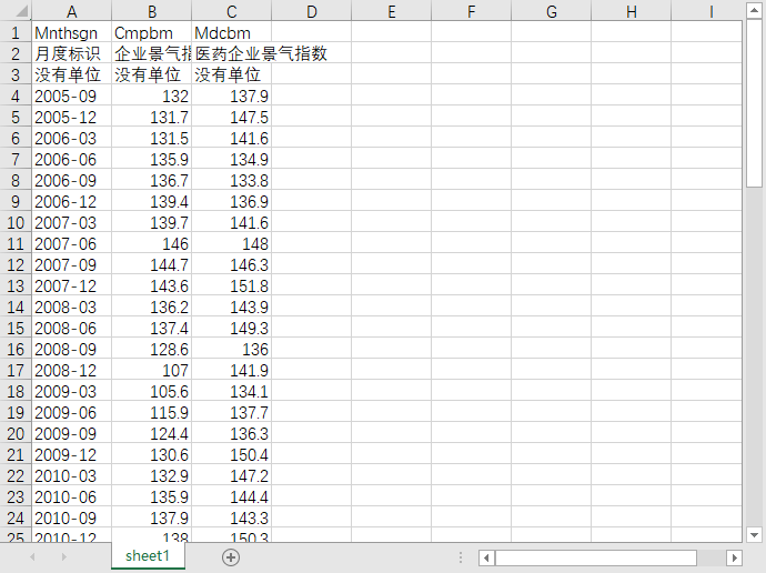 月度标识 企业景气指数 医药企业景气指数