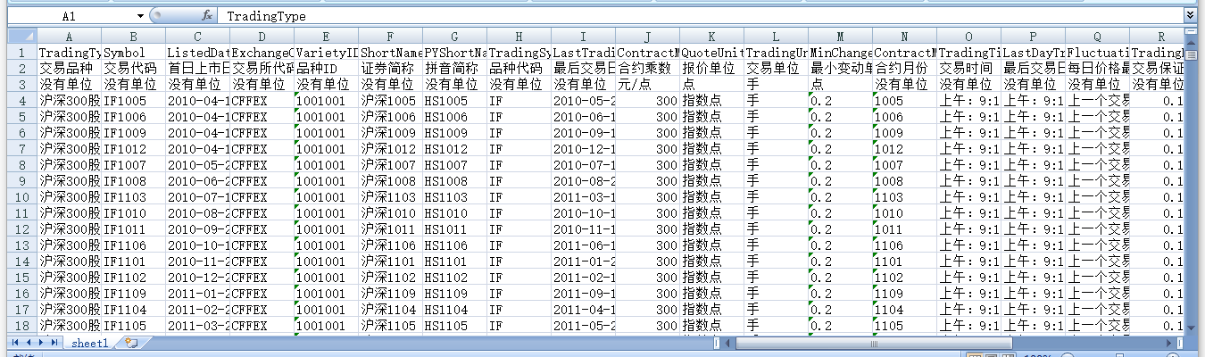 交易品种 交易代码 首日上市日期 交易所代码 品种ID 证券简称 拼音简称 品种代码 最后交易日 合约乘数 报价单位 交易单位 最小变动单位 合约月份 交易时间 最后交易日交易时间 每日价格最大波动限制(%) 交易保证金 多头交易保证金 空头交易保证金 交割日期规则 交割方式 交易手续费 交割手续费 最后交割日 挂牌基准价