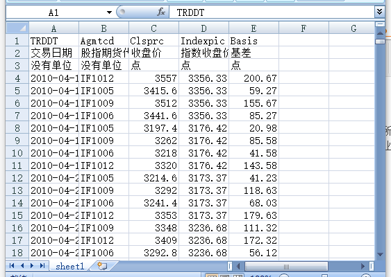 交易日期 股指期货代码 收盘价 指数收盘价 基差