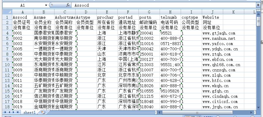 会员证号 会员全称 会员简称 会员类型 所在省份 通讯地址 邮政编码 电话号码 公司类型 网址