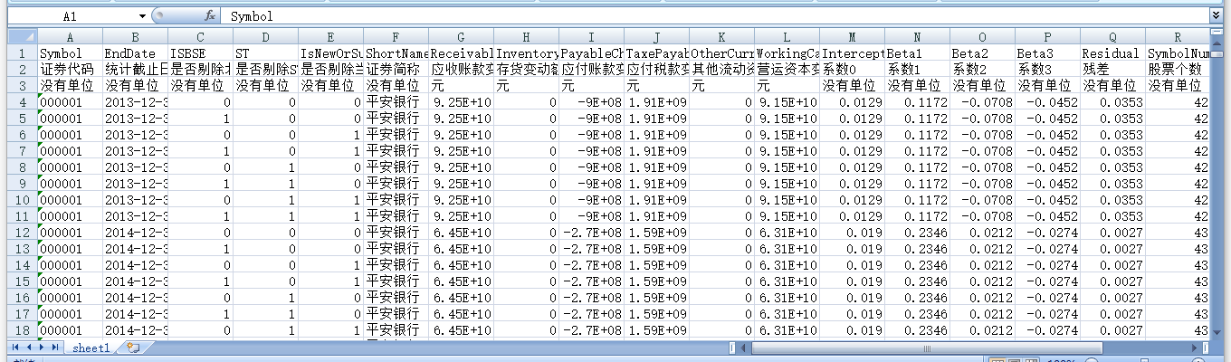 SymbolNum [股票个数] - 同年度同行业参与计算的股票数量,制造业“C”字头代码取2位,其他行业取1位,进行行业分类。