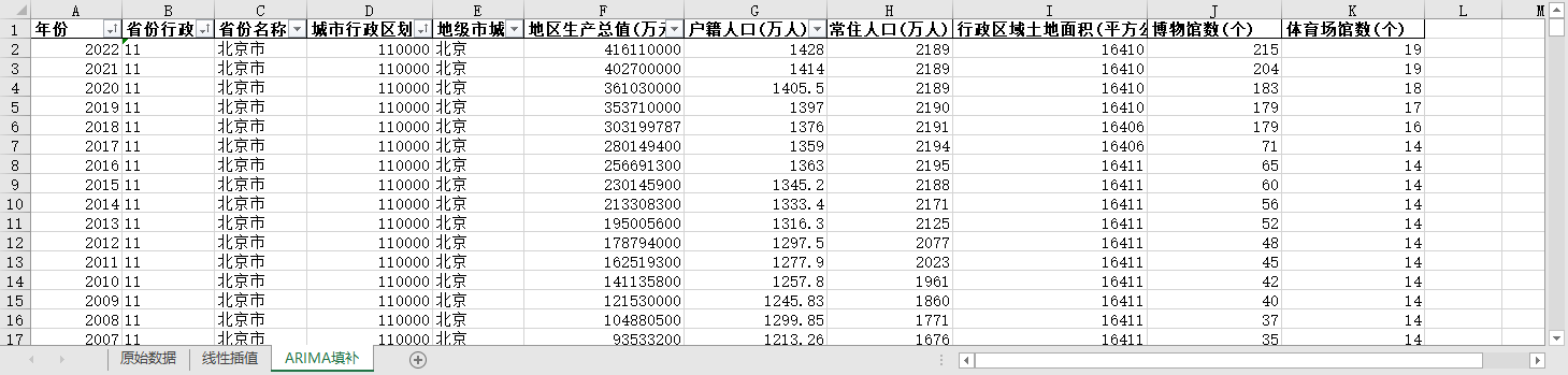 excel数据文件包原始数据(由于多年度指标不同存在缺失值)、线性插值、ARIMA填补三个版本,提供您参考使用。