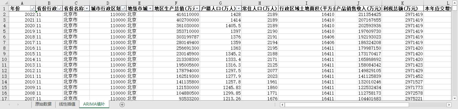 excel数据文件包原始数据(由于多年度指标不同存在缺失值)、线性插值、ARIMA填补三个版本,提供您参考使用。