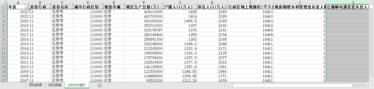 ARIMA填补。基于ARIMA模型,利用同一地区的时间序列数据,对缺失值进行预测填补。