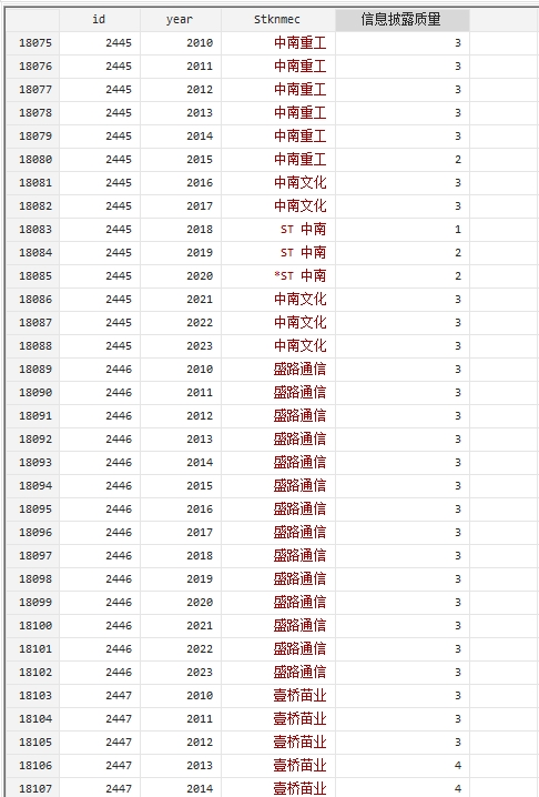 2022-2001年上市公司企业信息披露质量数据两套最新最全