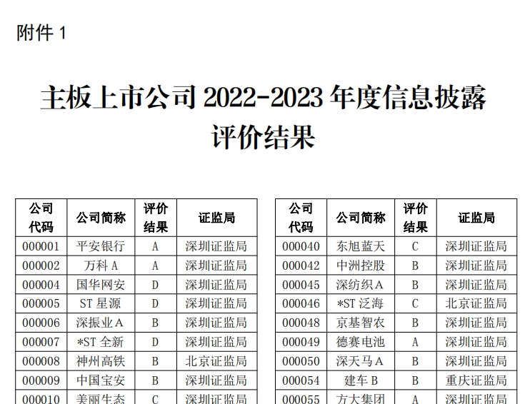 深交所和上交所每年对上市公司会计信息披露的真实性、准确性、完整性、及时性、公平性、合规性等六项指标进行评估,分为A级(优秀)、B级(良好)、C级(合格)、D级(不合格)。