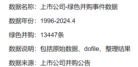 1996-2024年中国上市企业绿色并购数据(内含处理程序和参考文献).zip